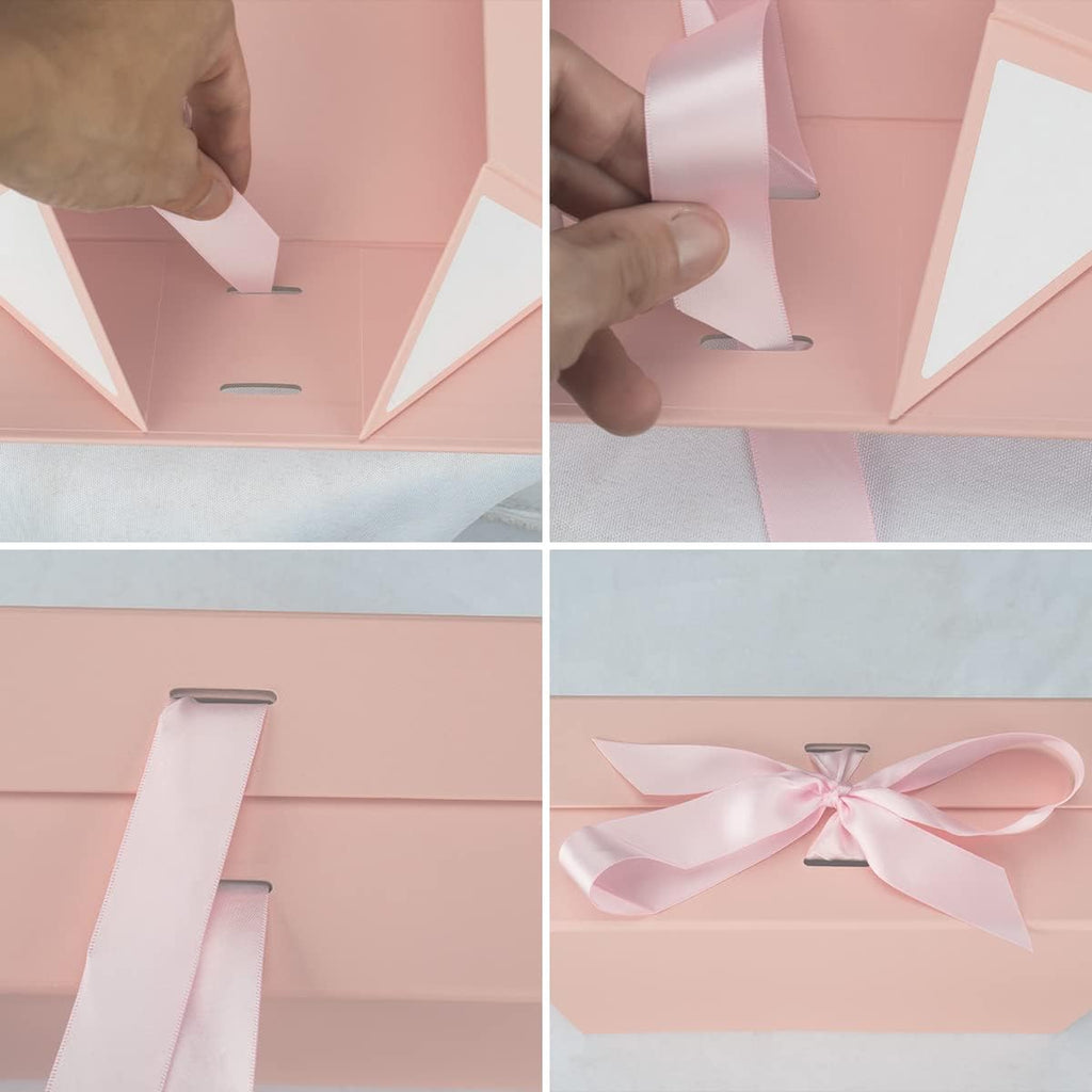 Elegant and Durable Collapsible Gift Box with Lid and Satin Ribbons