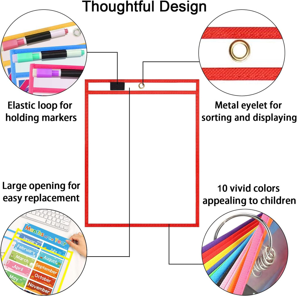 Dry Erase Pockets 20-Pack - Reusable Sleeves for Homeschool and Classroom Organization, 10" x 14"