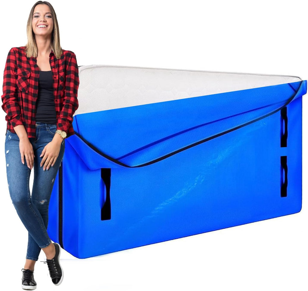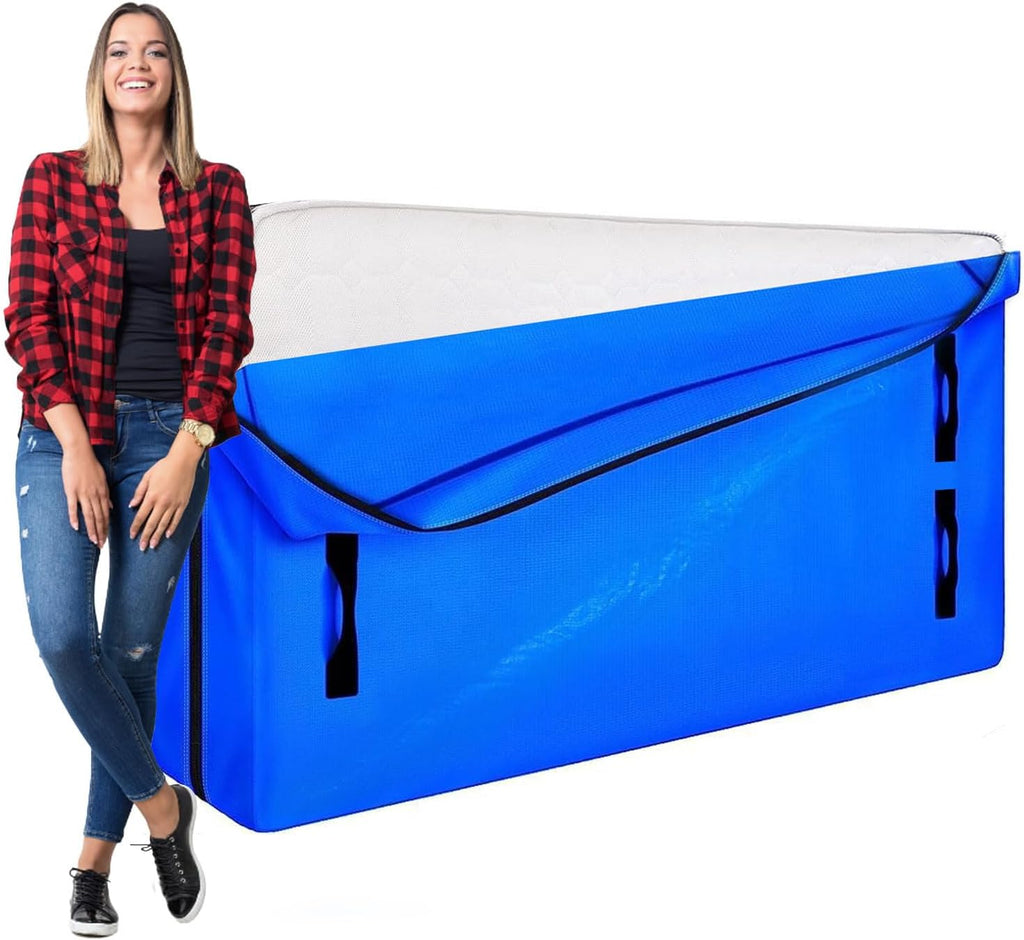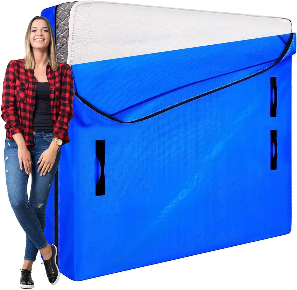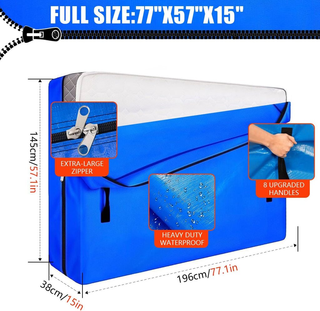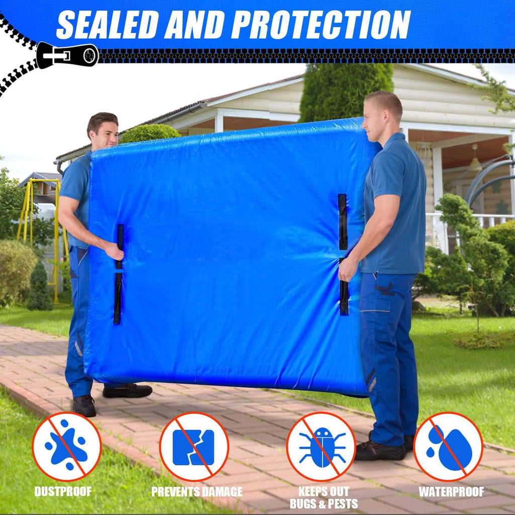 Mattress Bags for Moving - Waterproof Storage Cover with Dual Zippers and 8 Reinforced Handles, Extra Thick Reusable Tarp Material