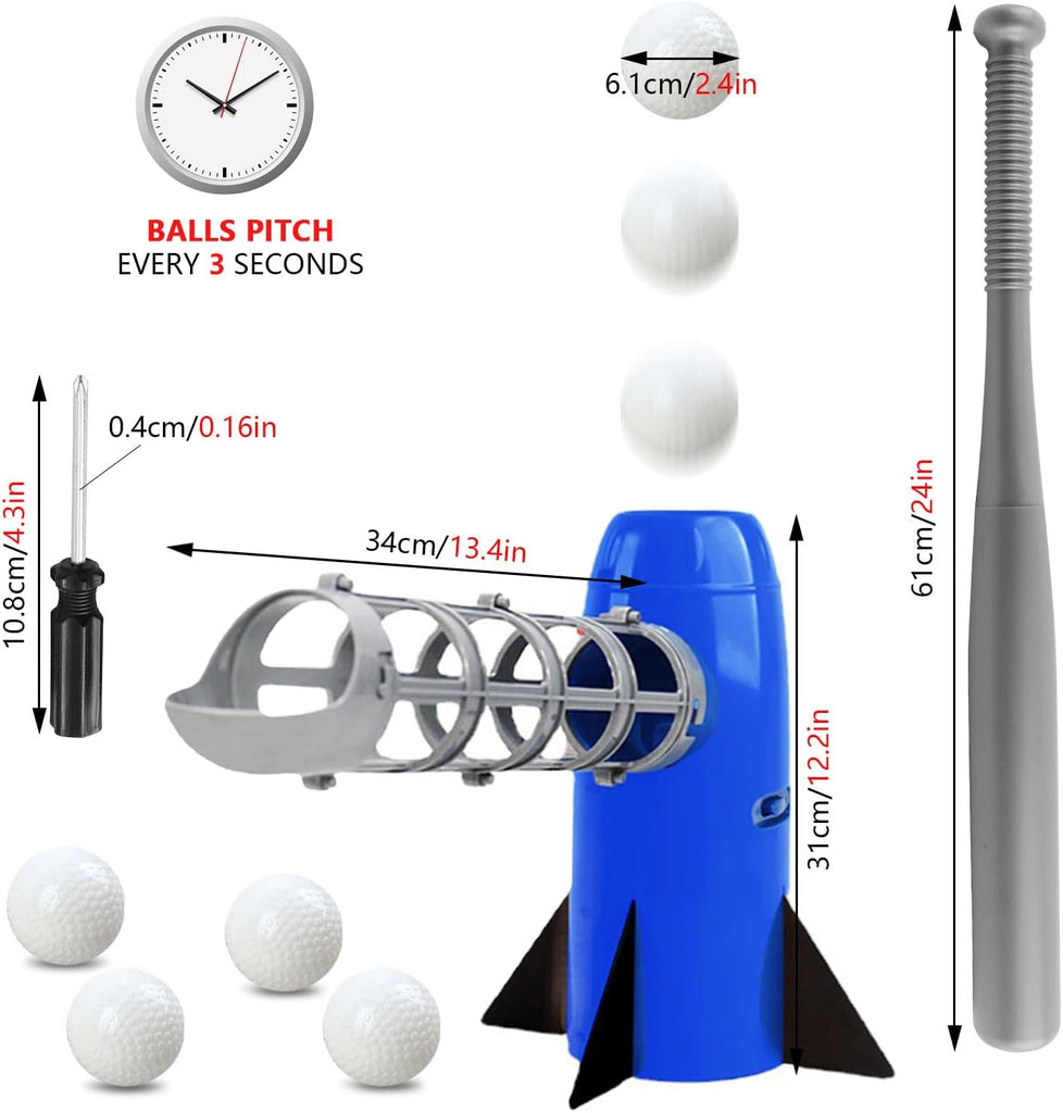 Complete Training Kit: Includes a rocket-shaped automatic pitching machine, a foldable plastic bat, and 5 PP balls - everything needed for comprehensive baseball training.