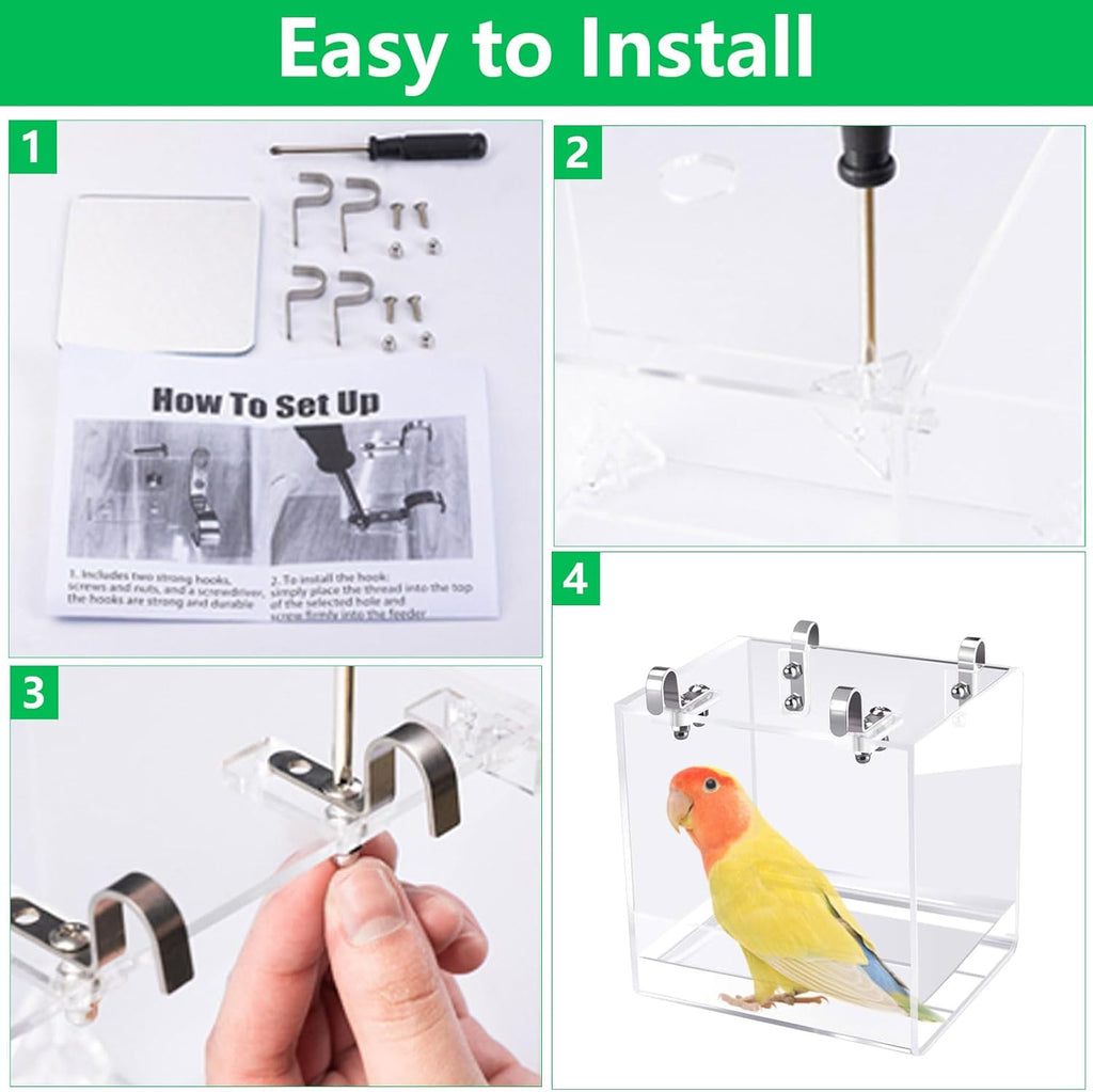 - The transparent birdbath box can clearly watch the activity of birds.Fits on any cage.