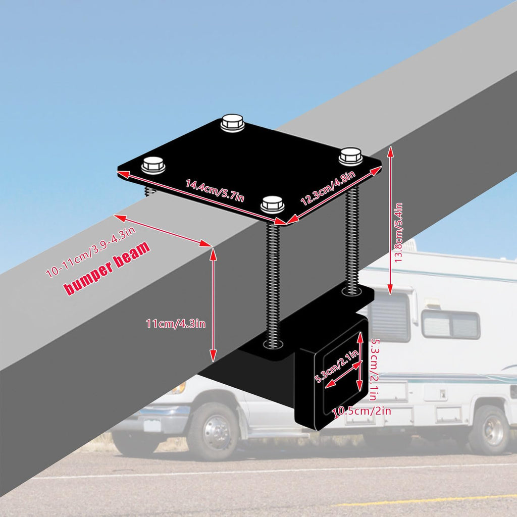 Upgrade your RV's towing capabilities with the Heavy Duty Anti-Rattle Bolt-on RV Bumper Hitch Receiver Adapter. Specifically designed to fit 4-4.5" beam trailer hitch receivers, this versatile adapter is ideal for mounting bike racks, campers, and cargo carriers on your RV, ensuring a secure and stable connection. The adapter features a 2-inch opening, compatible with most standard hitch accessories, providing a convenient and reliable solution for additional towing needs.